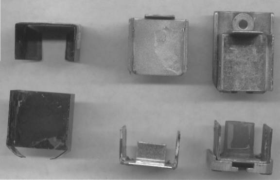 [The units pictured had quite a bit of adhesive between the overlapping flaps, which would significantly increase the reluctance of the shielding paths, reducing the shielding effectiveness.]