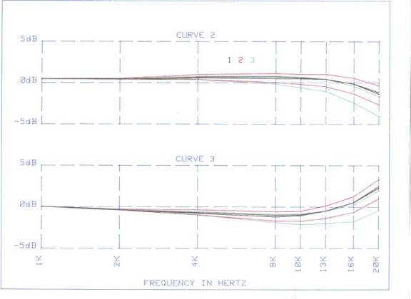 Figure 1. Test data from 3 stereo machines at 7.5 ips (red, green, and black pairs)